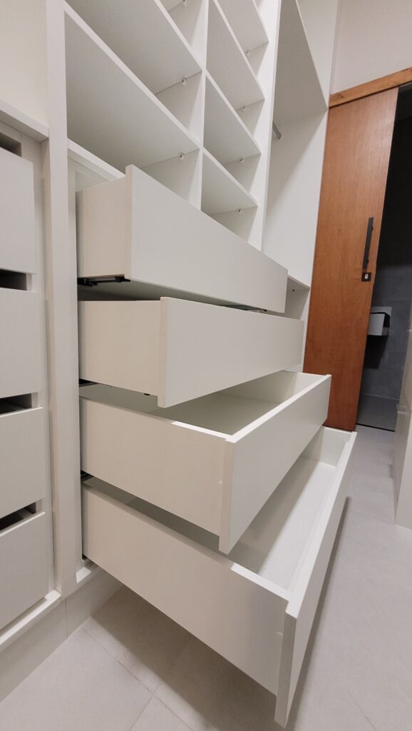 Desde o design até a escolha de materiais, tudo pode ser adaptado, incluindo corrediças, dobradiças e acabamentos, para garantir móveis funcionais, duráveis e com a sua personalidade.